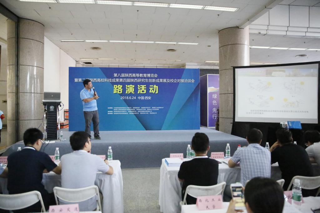 第二届陕西高校科技成果展上,我校技术研究院推选了百项科技成果入册参展, 现场展示了24项重点科技成果,并组织学院教师现场讲解,与企业洽谈对接。在校企对接洽谈会上,我校发布了最新科技成果,并与陕西中圣环境科技发展有限公司签订了” 研究开发新型旁流式 EBPR 工艺生物除磷关键技术”项目合作协议书。我校“新型太阳追踪自动控制系统”项目从全省86所高校近2000余项科研成果中脱颖而出,作为10项优秀项目之一进行了现场路演,并获得了评审专家的一致好评。