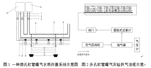 软管曝气水质改善系统实验室小试图可以看出,该软管可以在水中均匀产生气泡羽流,通过分析水体溶解氧含量可以发现。装置运行30分钟后,水体中溶解氧含量有明显增加。